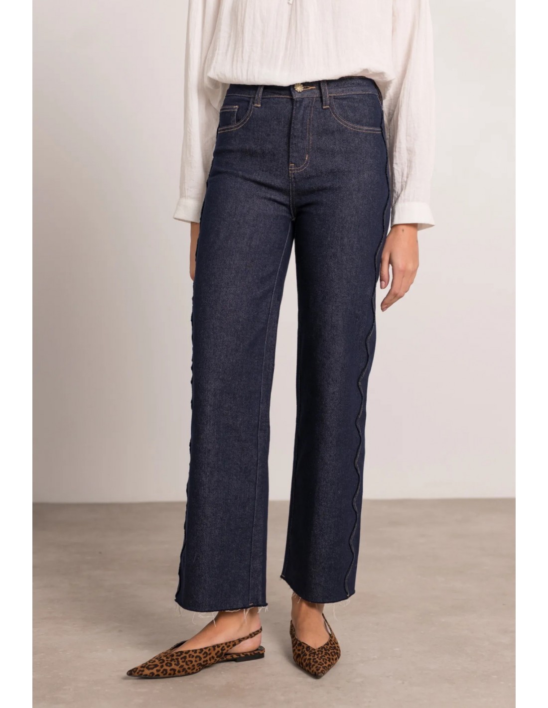 Finitions brutes : ourlet non cousu pour un effet tendance et décontracté.