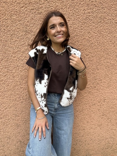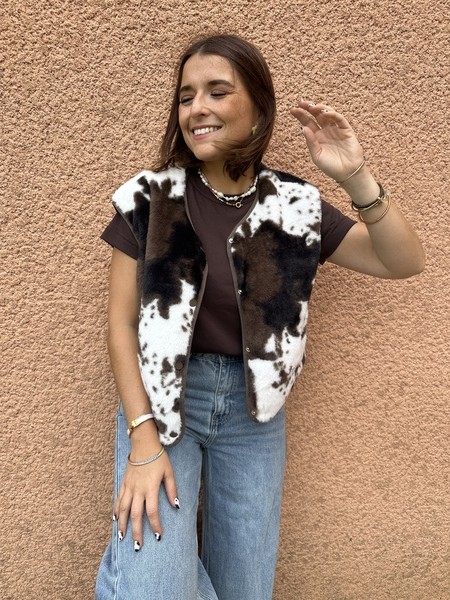 Gilet fausse fourrure – Imprimé vache 🐄✨