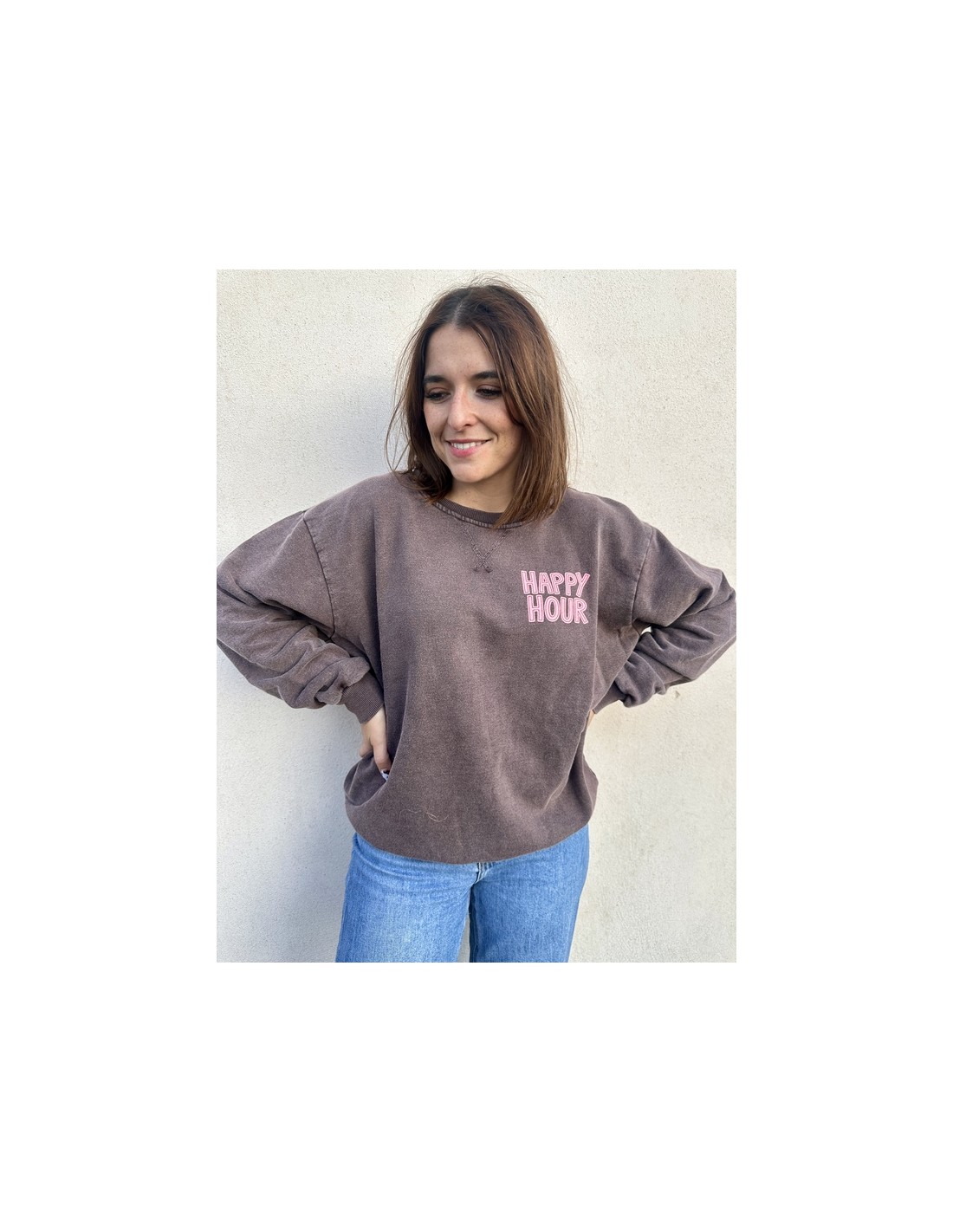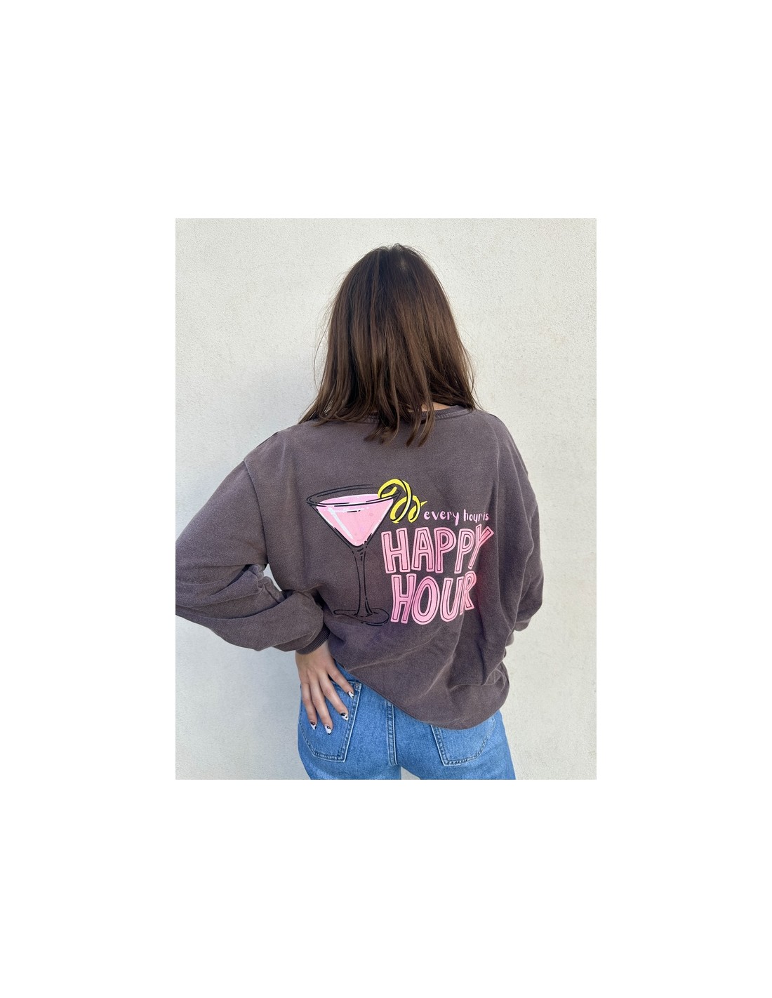 Ajoute une touche rétro et colorée à ton dressing avec notre sweat oversize Happy Hour !