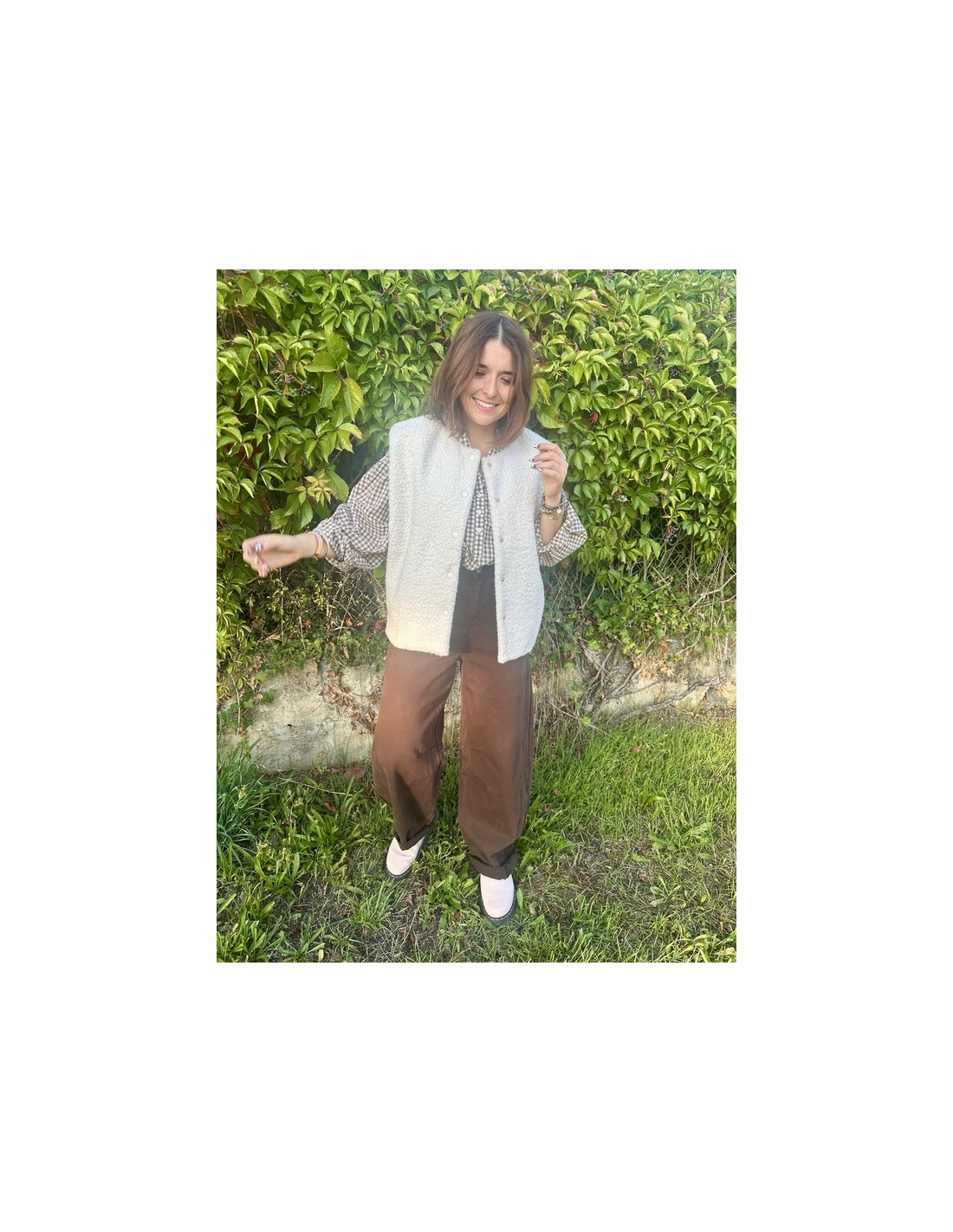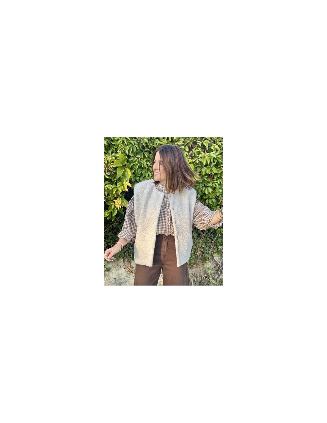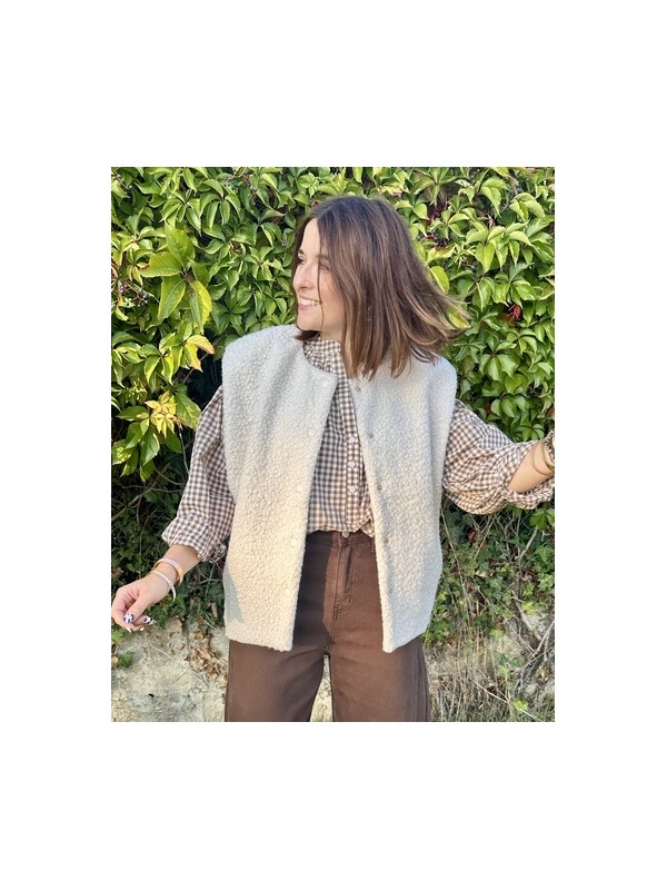 Cette veste sans manches en tissu bouclette est la pièce idéale pour sublimer ta tenue tout en apportant une touche de texture et de confort.