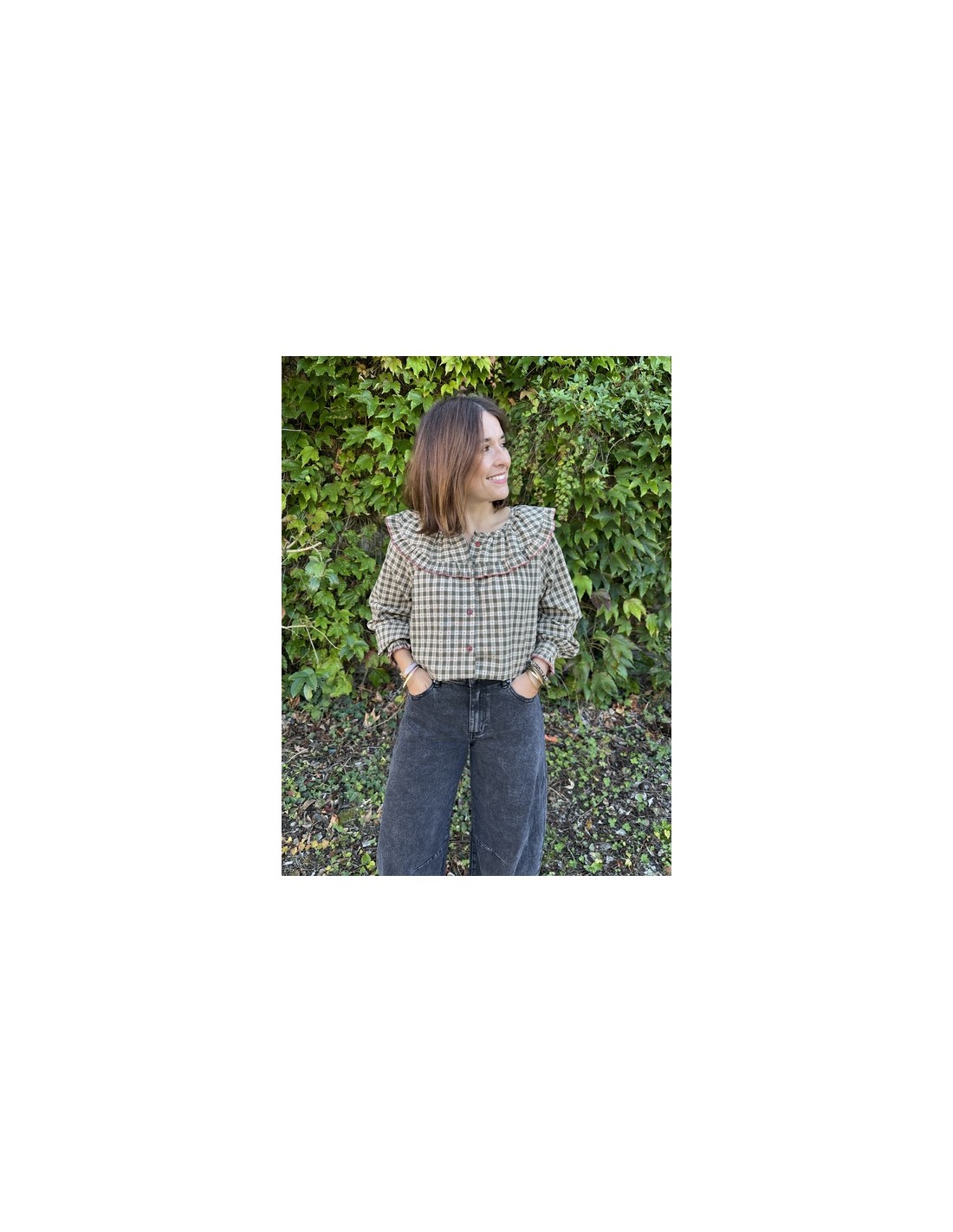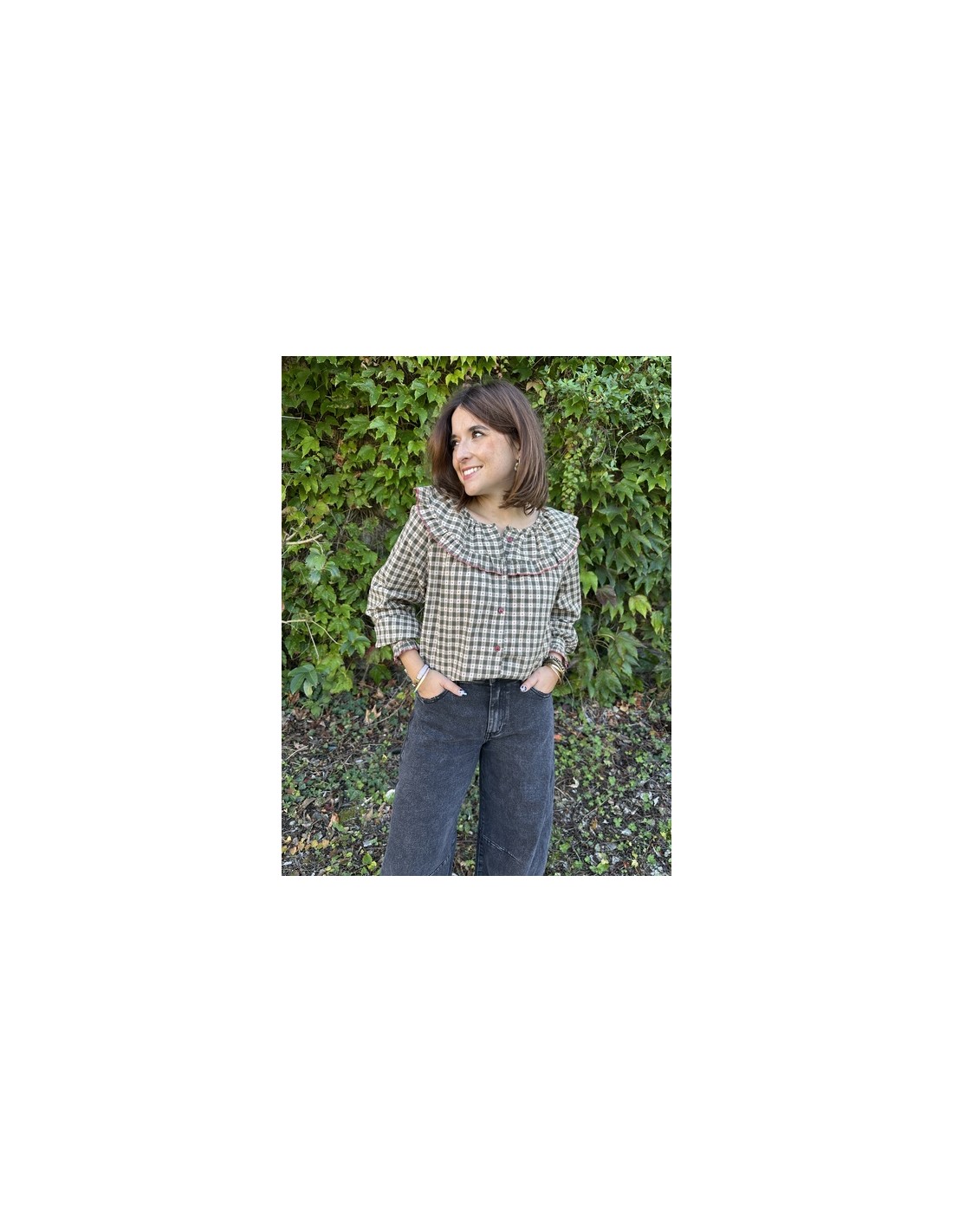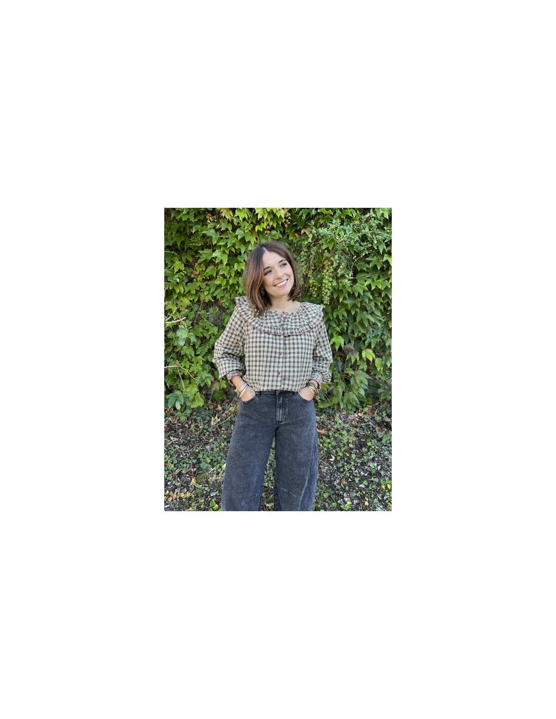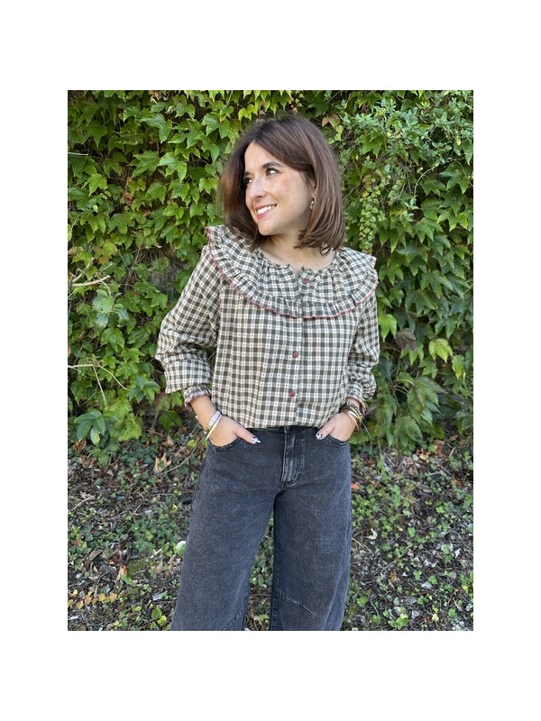 Un classique réinventé : cette blouse vichy kaki au col Claudine apporte une touche rétro douce à tes tenues. Avec sa coupe loose, elle offre confort et style, parfaite pour la mi-saison ou les superpositions !