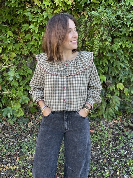 Un classique réinventé : cette blouse vichy kaki au col Claudine apporte une touche rétro douce à tes tenues. Avec sa coupe loose, elle offre confort et style, parfaite pour la mi-saison ou les superpositions !