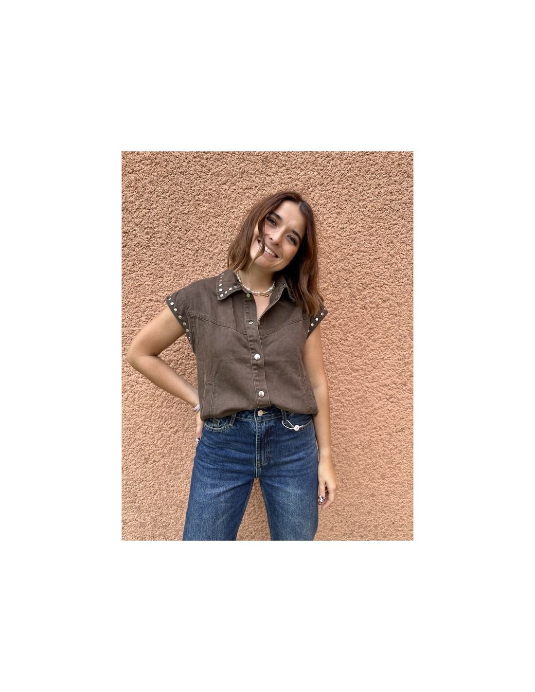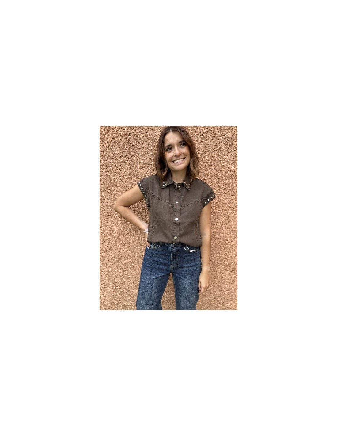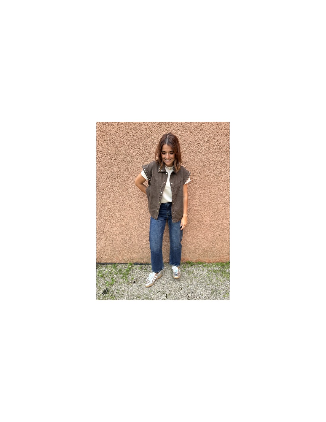Une veste audacieuse qui mêle détails cloutés et coupe versatile. Elle se porte aussi bien ouverte que fermée pour varier les looks selon l’humeur.